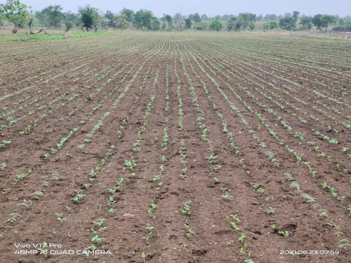 दहा दिवसांपूर्वी सर्व पेरणी आटोपली आहे. आता पाऊस नसल्याने पिके कोमेजून जात आहेत. येत्या दोन, तीन दिवसात पाऊस आला नाही तर दुबार पेरणीचे सावट आहे.