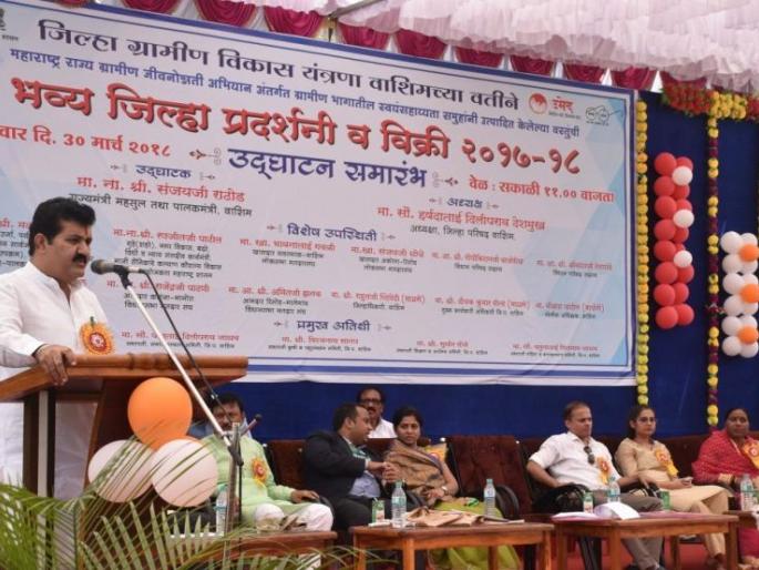 महाराष्ट्र राज्य ग्रामीण जीवनोन्नती अभियान अंतर्गत या प्रदर्शनीचे आयोजन करण्यात आले आहे. कार्यक्रमाच्या अध्यक्षस्थानी जिल्हा परिषदेच्या अध्यक्ष हर्षदा देशमुख होत्या. यावेळी जिल्हाधिकारी राहुल द्विवेदी, जिल्हा परिषदेचे मुख्य कार्यकारी अधिकारी दीपक कुमार मीना, जिल्हा पोलीस अधीक्षक मोक्षदा पाटील, वाशिमचे नगराध्यक्ष अशोक हेडा, जिल्हा परिषदेच्या समाज कल्याण विभागाच्या सभापती पानुताई जाधव, अतिरिक्त मुख कार्यकारी अधिकारी संजय कापडणीस, जिल्हा ग्रामीण विकास यंत्रणेचे प्रकल्प संचालक नितीन माने आदी उपस्थित होते. पालकमंत्री श्री. राठोड यांच्या हस्ते उद्घाटन झाल्यानंतर सर्व मान्यवरांनी प्रदर्शनीत उभारण्यात आलेल्या स्टॉलला भेट दिली. पालकमंत्री ाठोड म्हणाले की, ग्रामीण भागातील महिला बचत गट, शेतकरी गटांची उत्पादने, वस्तूंना जिल्हास्तरावर कायमस्वरूपी बाजारपेठ मिळवून देण्याच्या दृष्टीने या उत्पादने, वस्तूंच्या विक्रीसाठी वाशिम येथे मॉलची उभारणी करण्याचा निर्णय घेण्यात आला असून, त्यादृष्टीने इतर आवश्यक कार्यवाही तातडीने करण्याच्या सूचना जिल्हा प्रशासनाला देण्यात आल्या आहेत. जिल्ह्याच्या ठिकाणी होणाºया या मॉलमुळे ग्रामीण भागातील महिला बचत गट व शेतकरी गटांची उत्पादने एकाच छताखाली खरेदीची संधी ग्राहकांना मिळेल. या माध्यमातून बचत गट, शेतकरी गटाच्या अर्थकारणाला गती मिळेल व महिला बचत गटांच्या गटांच्या चळवळीला चालना मिळेल, असेही त्यांनी सांगितले. महिला बचत गटांना अधिकाधिक मदत करून त्यांच्या उद्योग, व्यवसायात सहाय्य करण्यासाठी राज्य शासन महाराष्ट्र राज्य ग्रामीण जीवनोन्नती अभियानाच्या माध्यमातून प्रयत्न करीत आहे. बचत गटांनी पारंपारिक वस्तू, उत्पादनांसोबत नवीन क्षेत्रातील संधींचा सुध्दा शोध घेऊन त्यानुसार व्यवसाय सुरु केला पाहिजे. या व्यवसायासाठी आवश्यक कौशल्य मिळविण्यासाठी त्यांना केंद्र शासनाच्या कौशल्य विकास कार्यक्रम अंतर्गत प्रशिक्षण घेता येईल. जिल्हा ग्रामीण विकास यंत्रणेने आयोजित केलेली तीन दिवशीय प्रदर्शनी महिला बचत गटांची उत्पादने ग्राहकांपर्यंत पोहोचविण्यासाठी उपयुक्त आहे. जिल्ह्यातील नागरिकांनी या प्रदर्शनीला भेट देऊन महिला बचत गटांनी उत्पादित केलेल्या वस्तूंची खरेदी करावी, असे आवाहनही पालकमंत्री राठोड यांनी यावेळी केले.