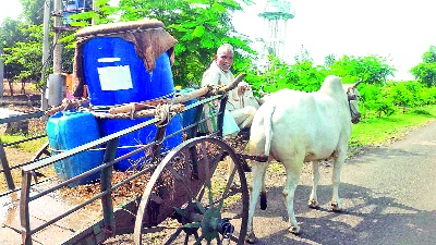 फवारणीसाठी बैलगाडीने न्यावे लागते पाणी!