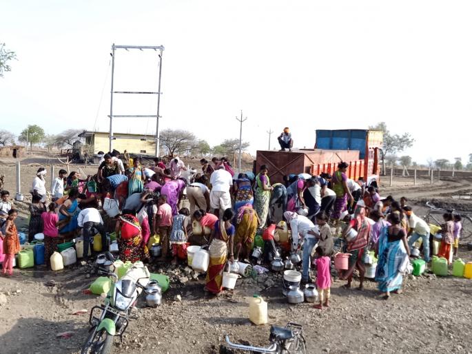 माळेगाव येथे पाणी भरण्यासाठी गावकऱ्यांची झुंबड