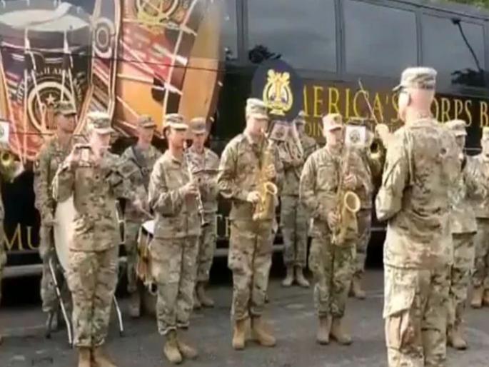 वॉश्गिंटन - लुईस मॅककार्डमध्ये भारत आणि अमेरिका यांच्या सैन्याचा संयुक्त अभ्यास शिबीर सुरु आहे. दोन्ही देशांमधील सुरक्षा व्यवस्था वाढविण्यासाठी हा अभ्यास सुरु आहे. गुरुवारी या अभ्यास सरावादरम्यान एक व्हिडीओ समोर आला. त्याचं कौतुक सोशल मीडियात सुरु आहे. अमेरिकेच्या सैन्याने भारताचं राष्ट्रगीत बँडच्या साहय्याने वाजवलं.