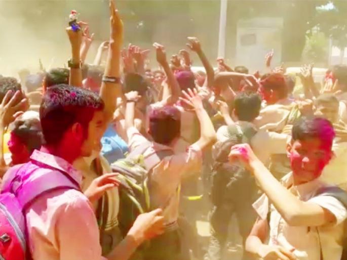 इयत्ता दहावीचा आज शेवटचा पेपर होता. कोल्हापुरात परीक्षा संपल्यावर संपल्यावर विदयार्थ्यांनी एकच जल्लोष केला. परीक्षा संपल्यावर विद्यार्थ्यांनी पुन्हा एकदा रंगपंचमी खेळली. हलगीच्या ठेक्यावर मुलांनी धमाल डान्सही केला.