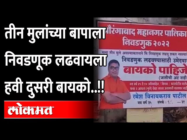 Aurangabad Paithan Gate : तीन मुलांच्या बापाला निवडणूक लढवायला हवी दुसरी बायको..!! Viral Banner By ऑनलाइन लोकमत | Updated: January 31, 2022 15:00 IST आणखी वाचा Subscribe to Notifications