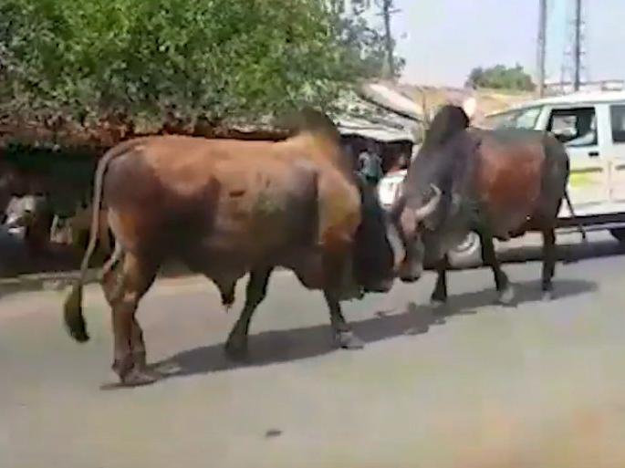 नाशिकच्या पिंपळगाव बसवंत येथील मुंबई आग्रा महामार्गावरील प्रमीला लॉन्ससमोर गुरुवारी सकाळी 9 पासून ते 10:30 वाजेदरम्यान दोन वळुंची झुंज रंगली. सुमारे दीड तास या रस्तावर संचारबंदीच लागली होती. या झुंजीमुळे नागरिक पण दुरुनच पळ काढत होते. अखेर अग्निशमन दलाला पाचारण करत दोन्ही वळूंवर पाण्याचा मारा केला व दीड तासांची ही झुंज अखेर अग्निशमन दलाने सोडवली.