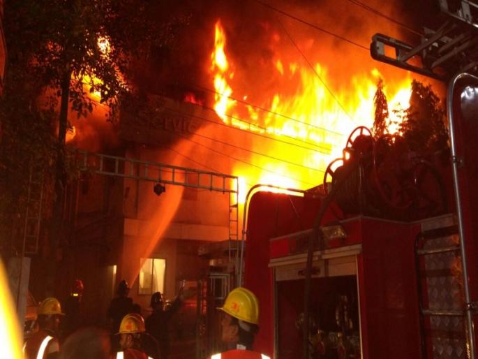 वागळे इस्टेट भागात असलेल्या निसान शोरूम आणि सर्व्हिस सेंटरला भीषण आग लागली. फायर ब्रिगडेच्या पाच गाड्या, तीन वॉटर टँकर आणि 2 जम्बो वॉटर टँकरच्या मदतीने आगीवर नियंत्रण मिळविण्यात यश आलं.