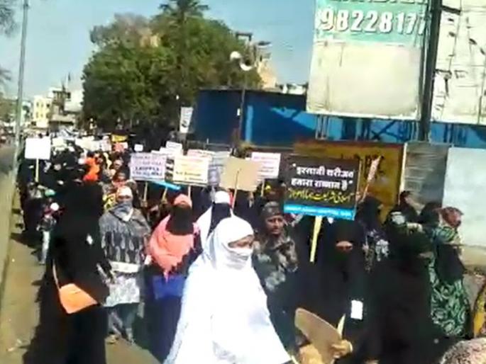 केंद्र सरकारकडून लोकसभेत मांडण्यात आलेल्या तिहेरी तलाकविरोधी विधेयक रद्द करण्याच्या मागणीसाठी नाशिक जिल्हास्तरीय मुस्लीम समाज एकवटला आहे. शरियत बचाव कृती समिती गठीत करण्यात आली असून या कमिटीच्या नेतृत्वाखाली आज दुपारी अडीच वाजता जुने नाशिकमधील बडी दर्गाच्या प्रारंगणातून जिल्हस्तरीय मुस्लीम महिलांनी मोर्चाला सुरूवात केली. व्हिडिओ : अझहर शेख