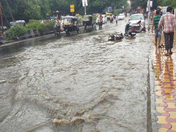 पुणे : आज दुपारी झालेल्या पावसामुळे शहरातील सर्वच प्रमुख रस्त्यांना ओढ्याचे स्वरूप आले होते. त्यामुळे नागरीकांच्या लाखो रुपयाची उधळण करून ठेकेदाराचे खिशे भरणार्या अधिकार्यांचे उखळ पावसाने पांढरे केले आहे. येथील पावसाळी लाईनला ड्रेनेज लाईन जोडल्या आहेत. त्यामुळे ड्रेनेजलाईनदेखील पावसाळ्यात ओसंडून वाहताना दिसत होत्या.