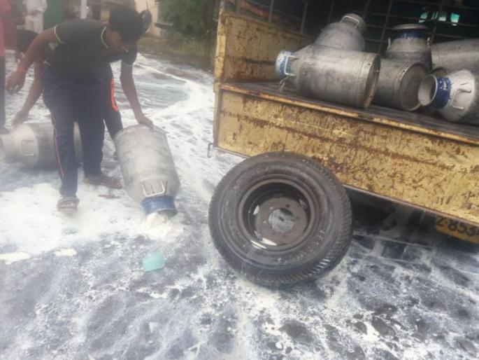 सांगली : आरवडे येथे दूध उत्पादकांनी दूध वाहतूक करणारी गाडी अडवून 1500 लिटर दूध ओतले