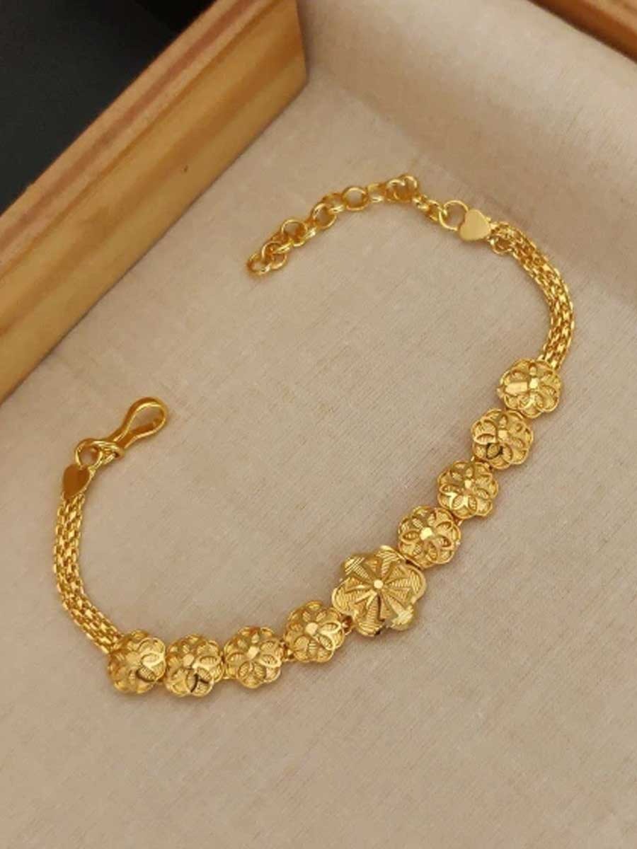 सोन्याचं पॉलिश असणाऱ्या गोल्ड प्लेटेड ब्रेसलेट्सच्या कित्येक वेगवेगळ्या डिझाईन्स सध्या बाजारात मिळत आहेत.