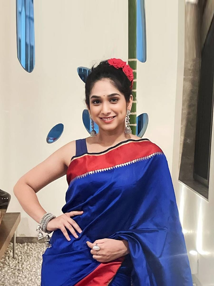 'फुलराणी' फेम प्रियदर्शिनी इंदलकरने निळ्या साडीत फोटोशूट केलं आहे