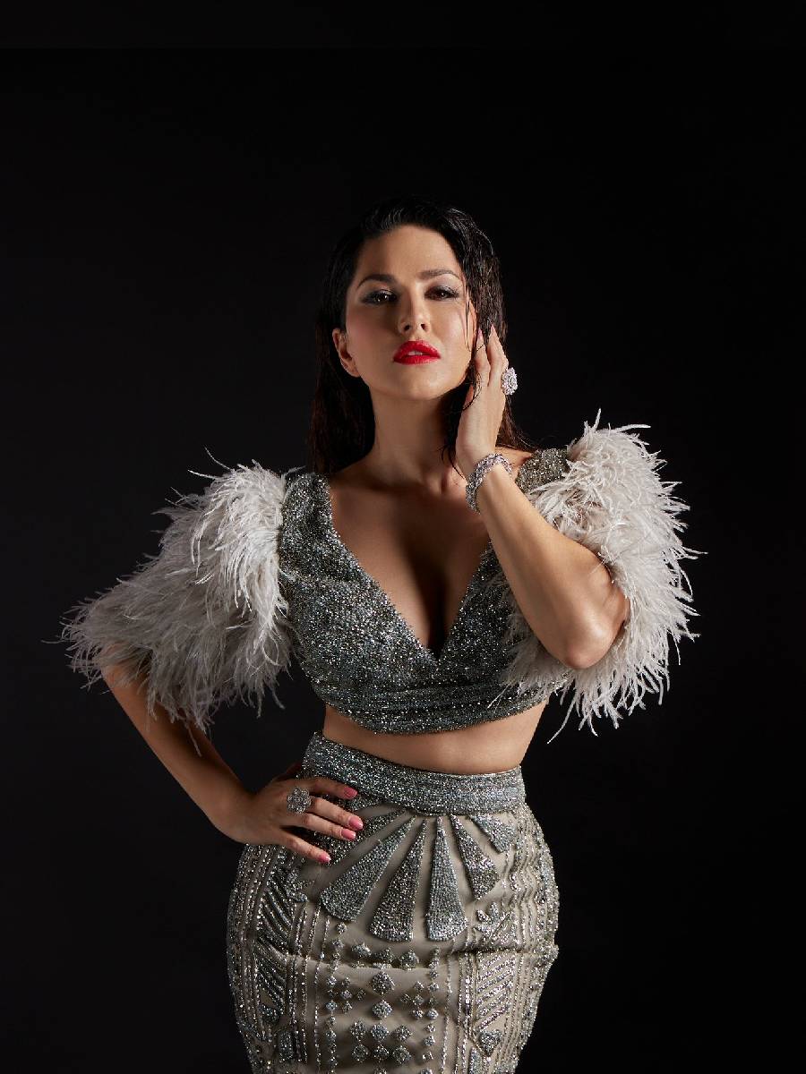 बेबी डॉल! सनी लिओनीची मेटॅलिक ग्रे लेहेंग्यात किलर पोज