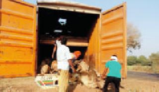 जनावरांचे दोन ट्रक पकडले : पांढरकवडा पोलिसांनी केली कारवाई पांढरकवडा : मध्यप्रदेशातून हैद्राबादच्या कत्तलखान्याकडे गुरांना घेऊन जाणारे दोन ट्रक ठाणेदार गुलाबराव वाघ व त्यांच्या पथकाने राष्ट्रीय महामार्गावरील ढोकी या गावाजवळ पकडले असून ९० गुरांना जीवदान मिळाले आहे. पकडण्यात आलेल्या एका ट्रेलरमधील ६५ पैकी १५ जनावरे मृत्युमुखी पडली असून दुसऱ्या ट्रकमधील ५० पैकी १० जनावरे मृत्युमुखी पडली. मध्यरात्रीच्या सुमारास मध्यप्रदेशातून नागपुरमार्गे एक ट्रेलर व एका ट्रकमध्ये गुरे कोंबून हैद्राबादच्या कत्तलखान्याकडे जात असल्याची टीप ठाणेदार गुलाबराव वाघ यांना मिळाली. ठाणेदार वाघ, ए.पी.आय आनंद पिदुरकर, पी.एस.आय.शुभांगी मोहारे व त्यांच्या सहकाऱ्यांनी तातडीने राष्ट्रीय महामार्गावरील केळापूर या गावाजवळ आपला ठिय्या लावला. मध्यरात्रीच्या सुमारास नागपुरकडून भरधाव येणारा एक दहाचाकी कंटेनर व एक ट्रक भरधाव हैद्राबादकडे जाताना दिसला. या दोन्हीही ट्रकमध्ये गुरे असल्याचा संशय ठाणेदार वाघ यांना आला. त्यांनी या दोन्हीही ट्रकचा पाठलाग करुन दोन्हीही ट्रक ढोकी या गावाजवळ पकडले. यू.पी.२१ ए.एन.३३२१ क्रमांकाच्या दहाचाकी ट्रेलरमध्ये कोंबून भरण्यात आलेली ६५ जनावरे आढळून आली. त्यापैकी १५ जनावरे गुदमरुन मृत्युमुखी पडली होती. एम.पी.०९ एच.एफ.८१९१ या क्रमांकाच्या ट्रकमध्ये कोंबून भरण्यात आलेली ५० जनावरे आढळून आली असून त्यांपैकी १० जनावरांचा गुदमरुन मृत्यू झाला. रात्रीच्या अंधाराचा फायदा घेत दोन्हीही ट्रकचे चालक मात्र फरार झाले. पोलिसांनी दुसरे चालक आणून एक ट्रक वणी तालुक्यातील रासा येथे, तर दुसरा वडगाव जंगल येथे नेला. ठाणेदार वाघ व त्यांचे सहकारी अधिक चौकशी करीत आहे. (तालुका प्रतिनिधी) शिरपूरमध्ये २७ जनावरे पकडली नागपूर येथून ट्रक क्रमांक एम.एच.४०-वाय.४७३४ ने तेलंगणात कत्तलीसाठी नेण्यात येणारी २७ जनावरे शिरपूर पोलिसांनी वेळाबाई फाट्याजवळ पकडले. यातील एक बैैल मृत अवस्थेत होता. ठाणेदार सागर इंगोले यांना माहिती मिळताच बुधवारी पहाटे वेळाबाई फाट्याजवळ सापळा रचून २६ जनावरांची सुटका केली. या बैैलांची किंमत पाच लाख रूपये असून ट्रकसह पोलिसांनी १२ लाखांचा मुद्देमाल जप्त केला. याप्रकरणी फिरोज खान रमजान खान (३०), रतीराम वखाराम राखेड (२७), अखतर अहेमद कुरेशी (२६), जुबेर सुभान शेख (२७) सर्व रा.नागपूर या तस्करांना अटक करण्यात आली आहे. अधिक तपास प्रकाश भगत करीत आहे.