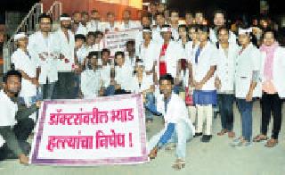मारहाणीचा निषेध... डॉक्टरांना होत असलेल्या मारहाणीच्या निषेधार्थ शासकीय रुग्णालयातील आंतरवासिता डॉक्टर आणि कनिष्ठ निवासी वैद्यकीय अधिकाऱ्यांनी शहरातून कँडल मार्च काढला. मेडिकल चौकात मेणबत्त्या पेटवून या डॉक्टरांनी निषेध नोंदविला.