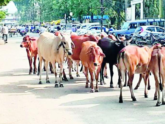 लोकमत न्यूज नेटवर्कउमरखेड : शहरातील वर्दळीच्या नागपूर-तुळजापूर राष्ट्रीय महामार्गसह सर्व प्रमुख रस्त्यांवर मोकाट जनावरांचा ठिय्या असतो. यामुळे वाहतुकीला अडथळा निर्माण होतो. मोकाट जनावरांना चुकवून वाहने चालविताना अपघात होत आहे. यात दररोज अनेक जण जखमी होत आहे. परिणामी नागरिक व वाहनधारकांना जीव मुठीत घेऊन प्रवास करावा लागतो.रस्त्यांवरील मोकाट जनावरांमुळे अपघात वाढत असल्याने नागरिक संतापले आहे. एखाद्याचा बळी गेल्यानंतरच पालिका प्रशासन मोकाट जनावर मालकांवर कारवाई करणार काय, असा संतप्त प्रश्न उपस्थित केला जात आहे.पालिकेच्या उदासीनतेमुळे मोकाट जनावरांनी रस्त्यांवरच ठिय्या मांडल्याने नागरिक त्रस्त आहे. विशेषत: शाळेत जाणाऱ्या विद्यार्थ्यांना अनंत अडचणींचा सामना करावा लागत आहे. नांदेड, पुसद, ढाणकी, महागाव या चारही रस्त्यांवर मोकाट जनावरांचे कळप ठिय्या मांडून बसतात. २४ तास त्यांचा मुक्काम रस्त्यांवरच असतो. याशिवाय शहरातील इतर लहान रस्ते, प्रमुख सिमेंट रस्ते, डांबरी रस्त्यांवर मोकाट जनावरांनी उच्छाद मांडला आहे. त्यांच्यामुळे वाहनधारकांना कसरत करावी लागत आहे. जनावरांनी रस्त्याच्या मध्यभागी ठिय्या मांडल्याने वाहने समोर काढावी कशी, असा प्रश्न निर्माण झाला आहे. सध्या रस्त्यांवरील खड्डे आणि जनावरांची नागरिकांमध्ये चांगलीच दहशत दिसून येत आहे.पोलिसांचेही कायम दुर्लक्षचलगतच्या जिल्ह्यात पोलिसांनी मोकाट जनावर मालकांना सीआरपीसी १४९ नुसार नोटीस बजावली. मात्र येथील पोलीस विभाग या मोकटा जनावरांकडे दुर्लक्ष करीत आहे. पालिका आणि पोलीस प्रशासनाच्या दुर्लक्षामुणे शहरात मोकाट जनावरांची समस्या कायम आहे. पालिा आणि पोलीस प्रशासनाने मोकाट जनावरे मालकांबाबत कठोर भूमिका घ्यावी, अशी अपेक्षा नागरिक आणि वाहनधारकांकडून व्यक्त केली जात आहे.मालकांवर कठोर कारवाई होत नाहीशहरात मोकाट जनावरांनी हैदोस घातला आहे. जनावरे चौकात ठिय्या मांडून बसल्याने दररोज अपघात होत आहे. मात्र नगरपरिषद प्रशासन अद्यापही उदासीन असल्याने वाहनधारकांमध्ये संताप व्यक्त केला जात आहे. मात्र जनावर मालकांवर कठोर कारवाई केली जात नाही.