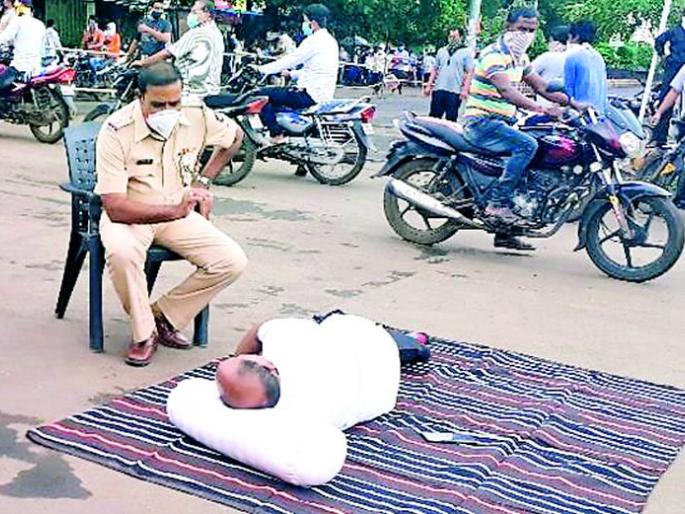 लोकमत न्यूज नेटवर्कपांढरकवडा : एकीकडे दररोज पांढरकवडा शहरात कोरोनाचे रुग्ण वाढत असताना दुसरीकडे शहरात राजकीय स्टंटबाजीला उधाण आले.सोमवारी सकाळी कै.वसंतराव नाईक स्वावलंबन मिशनचे अध्यक्ष किशोर तिवारी यांनी अचानक रस्त्यावर उतरून ज्या परिसरातील रुग्णांनी कोरोनावर मात केली, त्या परिसरातील प्रतिबंधीत क्षेत्र हटविण्यात यावे, अशी मागणी करत रस्त्यावर ठिय्या दिला. त्यामुळे कोरोनाच्या विरोधात लढा देणारे प्रशासन हतबल झाले.रविवारी रात्री मेन लाईन परिसरातील प्रतिबंधीत क्षेत्रासाठी लावलेले कठडे काढत असतानाचा एक व्हिडीओ आणि काही फोटो व्हायरल झालेत. त्यात किशोर तिवारी दिसतात. याबाबत त्यांना विचारणा केली असता, आपण कोणतेही कठडे काढले नाहीत. नगरपालिकेच्या कंत्राटदाराने ते कठडे काढलेत, असे ते म्हणाले. सोमवारी सकाळी पुन्हा ते कठडे पूर्ववत लावण्यात आले. त्यानंतर सकाळी १० वाजतापासून स्थानिक बिरसा मुंडा चौकात किशोर तिवारी यांनी एका चादरीवर झोपून ठिय्या आंदोलन सुरू केले. स्थानिक प्रशासनाची मनमानी सुरू असून शासनाच्या मार्गदर्शक सूचनांना पायदळी तुडविल्या जात असल्याचा आरोप त्यांनी केला. ज्या परिसरात कोरोना रुग्णच नाही, त्या परिसरातील प्रतिबंधीत क्षेत्र हटवावे, अशी त्यांची मागणी आहे. अकारण लोक या क्षेत्रात अडकून पडले असून त्यांच्या रोजगाराचा प्रश्न गंभीर बनला आहे. संपूर्ण बाजारपेठ बंद असल्याने व्यावसायिक अडचणीत आले असल्याचे तिवारी यांचे म्हणणे आहे. सायंकाळी ४ वाजतानंतरही त्यांचे आंदोलन सुरूच होते. यासंदर्भात ठाणेदार महल्ले यांच्याशी संपर्क साधला असता, चर्चा सुरू असल्याचे त्यांनी सांगितले. तर तहसीलदारांनी बैठकीत असल्याचे सांगितले.