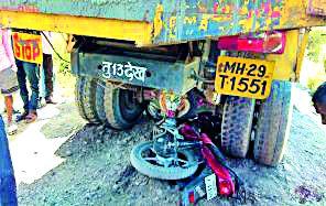 ट्रक मागे घेताना दुचाकी चिरडून बालिका ठार