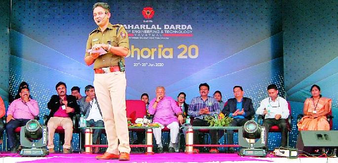 लोकमत न्यूज नेटवर्कयवतमाळ : येथील जवाहरलाल दर्डा अभियांत्रिकी महाविद्यालयाचे वार्षिक स्नेहसंमेलन ‘युफोरिया-२०’ उत्साहात पार पडले. सांस्कृतिक कार्यक्रम, माजी विद्यार्थ्यांचा गौरव, विद्यापीठाच्या परीक्षेतील गुणवंत विद्यार्थ्यांसह क्रीडा स्पर्धांमध्ये यशस्वी विद्यार्थ्यांचा सत्कार आदी कार्यक्रम यामध्ये घेण्यात आले.स्नेहसंमेलनाचे उद्घाटन माँ सरस्वती आणि स्वातंत्र्य संग्राम सेनानी जवाहरलाल दर्डा उपाख्य बाबूजी यांच्या प्रतिमेला हारार्पण आणि दीपप्रज्वलन करून झाले. यावेळी अध्यक्षस्थानी जवाहरलाल दर्डा एज्यूकेशन सोसायटीचे सचिव किशोर दर्डा होते. सोसायटीचे सदस्य डॉ. लव दर्डा, प्रभारी प्राचार्य डॉ. डी.एन. चौधरी, ‘युफोरिया-२०’चे समन्वयक डॉ. पंकज पंडित, सोनाली लव दर्डा आदी उपस्थित होते. विद्यार्थी प्रतिनिधी प्रगती मुंडेकर, अभिषेक गोडेकर, तेजल दानखडे, नेहा दुर्गे, धनंजय तुळसकर आदींची प्रामुख्याने उपस्थिती होती.नृत्य, वादविवाद स्पर्धा, कविसंमेलन, नाटिका, फॅशन शो, बेस्ट स्टुडंट स्पर्धा, कला प्रदर्शन, ऑर्केस्ट्रा आदी कार्यक्रमात विद्यार्थी उत्स्फूर्तपणे सहभागी झाले होते. संत गाडगेबाबा अमरावती विद्यापीठ संघातील कलरकोटचे मानकरी गौरी राऊत (टेबल टेनिस), देवांशू आकरे (वेटलिफ्टिंग) यांना स्मृतिचिन्ह देऊन गौरविण्यात आले. आंतर महाविद्यालयीन स्पर्धेचे प्रतिनिधी व क्रीडा स्पर्धेतील विजेत्यांनाही सन्मानित करण्यात आले.दुसऱ्या दिवशीच्या कार्यक्रमात माजी विद्यार्थ्यांचा गौरव करण्यात आला. शैक्षणिक सत्र २०१९-२० मध्ये महाविद्यालयातून पहिली आलेली इंद्रनील कौर हिला सुवर्ण पदक प्रदान करण्यात आले. यावेळी ग्रॅज्यूएशन डे सेरेमनीमध्ये सत्र २०१८-१९ व २०१९-२० मध्ये उत्तीर्ण आणि विद्यापीठात गुणवत्ता यादीत आलेल्या २८ विद्यार्थ्यांचा स्मृतिचिन्ह देऊन सत्कार आणि पदवी प्रदान करण्यात आली. या कार्यक्रमाच्या अध्यक्षस्थानी संस्थेचे सचिव किशोर दर्डा होते. प्रमुख पाहुणे म्हणून अमरावती विभाग तंत्रशिक्षण सहायक संचालक डॉ. डी.व्ही. जाधव, बँक ऑफ इंडिया मुख्य शाखेचे व्यवस्थापक अनुप कुमार लाभले होते.समारोपीय कार्यक्रमात ‘युफोरिया-२०’मधील विविध स्पर्धांचे बक्षीस वितरण करण्यात आले. यावेळी प्रमुख पाहुणे म्हणून अपर जिल्हा पोलीस अधीक्षक नुरूल हसन लाभले होते. त्यांनी विद्यार्थ्यांशी भावनिक संवाद साधत मार्गदर्शन केले. ते म्हणाले, भाषा, धर्म, जाती, विपरित परिस्थिती, गरीबी आदी बाबी व्यक्तीच्या यशामध्ये बाधा बनू शकत नाही. आपले ध्येय निश्चित करा, त्यासाठी पूर्ण ताकदीने व नियोजनबद्ध रितीने परिश्रम व प्रयत्नाची पराकाष्टा करा, असा मोलाचा सल्ला त्यांनी यावेळी दिला.या कार्