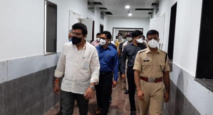 यावेळी पालकमंत्र्यांनी पीपीई किट घालून आयसोलेशन वॉर्डात भेट दिली. तसेच उपचार आणि येथे पुरविण्यात येणा-या सोयीसुविधांबाबत माहिती जाणून घेतली. तसेच रुग्णांची संवाद साधला. तत्पूर्वी पालकमंत्र्यांनी सुपर स्पेशालिटी हॉस्पीटलच्या बांधकामाची पाहणी केली.