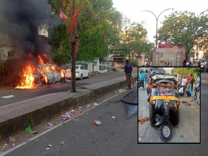 ऑटोरिक्षा चालकाला धडक देऊन ठार करणारी कार संतसेना चौक परिसरात उभी होती. या कारने सोमवारी सकाळी अचानक पेट घेतला. उभी कार पेटत असतना अग्निशमन दलाला पाचारण करण्यात आले. मात्र तोपर्यंत ही कार जळून खाक झाली. पोलिसांनी घटनास्थळी भेट देऊन पाहणी केली. या कारचा क्रमांक एम एच २९ /बीपी/ ०९९९ असल्याचे पोलिसांकडून सांगण्यात आले. दोन्ही घटनांचा तपास अवधूतवाडी पोलिस करीत आहेत.