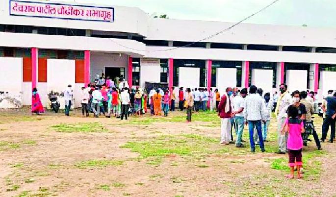 एकाचवेळी सर्वजण आल्याने गर्दी झाली होती. आरोग्य कर्मचारी व पोलीस त्यांना फिजिकल डिस्टन्सिंगबाबत ओरडून सांगत होते. मात्र त्यांचे काहीच चालले नाही. या सभागृहात तीन दिवसात ६१३ टेस्ट झाल्या. त्यात ३३ जण पॉझिटिव्ह आढळले. आता अॅक्टीव्ह पॉझिटिव्ह रुग्ण ९१, तर एकूण बाधीत ३१0 झाले.