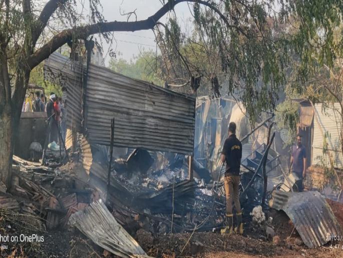 रवी मोतीराम राठोड, अमोल देवतळे, श्यामराव कांबळे या तिघांनी गोधनी रस्त्याच्या बाजूला नाल्यालगत असलेल्या जागेत स्वत:चा निवारा उभा केला होता. टीन पत्र्याच्या घरात राहून रोजमजुरी करुन हे तीनही कुटुंब उदरनिर्वाह करीत होते. रवि राठोड यांची फिरती रसवंती आहे. तर इतर दोघे रोजमजुरीची कामे करतात. संपूर्ण कुटुंबच घराला कुलूप लावून कामावर जाते. तीनही घरे बंद असताना अचानक गॅस गळती होवून सिलिंडर स्फोट झाला. नेमकी आग कशाने लागली हे स्पष्ट नसले तरी सिलिंडर स्फोट व गॅस गळती हा प्राथमिक अंदाज लावला जात आहे. आगीचा डोंब अचानक उसळल्यानंतर एकच धावाधाव झाली. अग्नीशमन बंबाला बोलाविण्यात आले. तोपर्यंत मात्र सिलिंडरचा स्फोट होवून घराचे पत्रे वरुन गेलेल्या उच्च दाब वाहिनी वीज तारांवर जावून अडकले. यामुळे स्पार्किंग होवून वीज पुरवठाही बंद पडला.