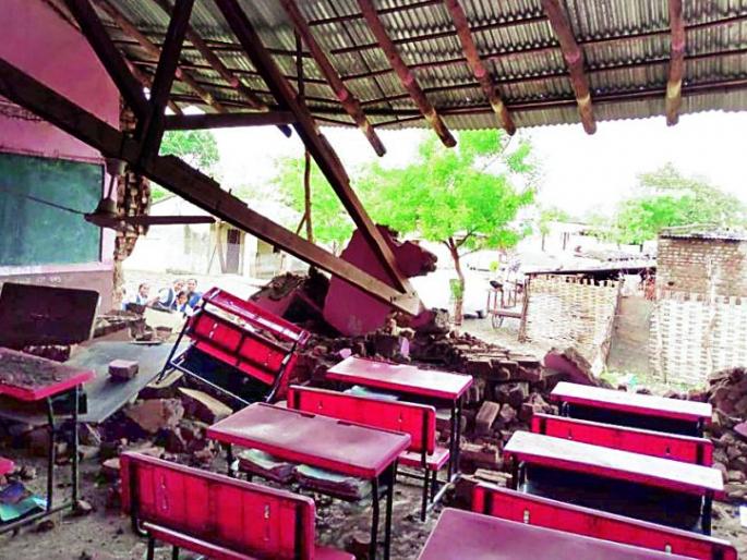 आष्टोना येथे जिल्हा परिषद शाळेची वर्गखोली कोसळली