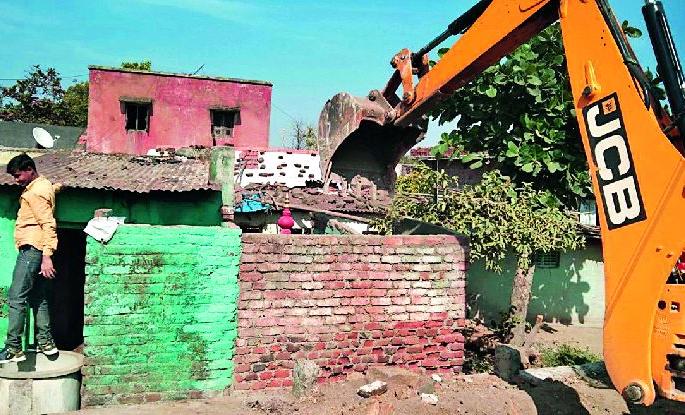 लोकमत न्यूज नेटवर्कयवतमाळ : स्थानिक लोहारा- पिंपळगाव बायपासचे रुंदीकरण केले जाणार आहे. हा मार्ग शहरातून जात असून येथून जडवाहनांची प्रचंड वर्दळ आहे. धामणगाव व अमरावती मार्गाला जोडणारा हा बायपास तब्बल २४ मीटर रूंद करून चौपदरी केला जाणार आहे. त्यासाठी शुक्रवारी नगरपरिषद व सार्वजनिक बांधकाम विभागाने संयुक्त मोहीम राबवून अतिक्रमण जमीनदोस्त केले. यावेळी चोख पोलीस बंदोबस्त होता.लोहारा-पिंपळगाव बायपासवर अनेक वर्षापासूनचे अतिक्रमण होते. अनेकांनी तर येथे पक्क्या घराचे बांधकाम केले होते. बांधकाम विभागाने रस्त्याचे काम सुरू करण्यासाठी अतिक्रमणधारकांना नोटीस बजावली. इतकेच नव्हेतर रस्त्याच्या दोन्ही बाजूला मोजमाप करून लाल पट्ट्याचे मार्किंग केले. त्यानंतरही येथील अतिक्रमण स्वत:हून काढण्यात आले नाही. अखेर सार्वजनिक बांधकाम विभाग आणि नगरपरिषदेच्या अतिक्रमणविरोधी पथकाने संयुक्त मोहीम हाती घेतली. पोलीस बंदोबस्तात रस्त्यावर येणाऱ्या घरांवर जेसीबी चढवण्यात आला. रस्त्यावर येणाºया झोपड्या - पक्की घरे, विविध नामफलक, चबुतरे काढण्यात आले. ही मोहीम सकाळी १० वाजता सुरू करण्यात आली. लोहारा चौकातून अतिक्रमण मोहीम येत असल्याचे कळताच अनेकांनी स्वत:हूनच अतिक्रमण काढण्यास सुरूवात केली. वाघापूर नाका परिसरात झोपड्या काढताना तणाव निर्माण झाला होता. पोलिसांनी स्थिती हाताळत अतिक्रमण मोहीम कायम ठेवली. ही मोहीम आणखी दोन दिवस चालणार असल्याचे बांधकाम अभियंत्यांनी सांगितले.अनधिकृत तरीही अगतिकलोहारा, वाघापूर आणि पिंपळगाव परिसरातून जाणाऱ्या या बायपास मार्गालगत मोठ्या प्रमाणात वस्ती वाढली आहे. लोहारा आणि वाघापूर येथे शेकडो गोरगरिबांनी अतिक्रमण करून झोपडीवजा घरे बांधून निवारा शोधला होता. आता रस्ता चौपदरीकरणासाठी ही घरे पाडली गेली. तर काही घरे अंशत: तोडली गेली. घरासाठी अतिक्रमण करणारे हे नागरिक आर्थिक दृष्ट्या दुर्बल असल्याने अगतिकही आहेत. मात्र अतिक्रमण हटाव मोहीम सुरू असताना हुज्जतबाजी न करता अनेकांनी स्वत:हून आपल्या घरातील साहित्य बाजूला केले. भरथंडीत निवाºयाचा प्रश्न मात्र कायम आहे.
