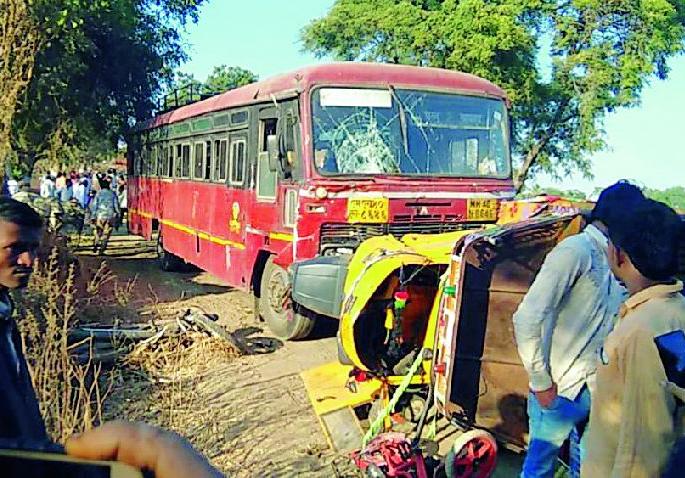 लोकमत न्यूज नेटवर्कगुंज : पुसद-महागाव रस्त्यावर भरधाव एसटी बसने दोन दुचाकी व दोन आॅटोरिक्षांना धडक दिली. या भीषण अपघातात ११ जण जखमी झाले असून तिघांची प्रकृती गंभीर आहे. गुंज येथील साखर कारखान्याजवळ मंगळवारी दुपारी ४ वाजता हा अपघात झाला.पुसदकडून येणाऱ्या बसने महागावकडून येणाऱ्या आॅटोरिक्षाला (क्र.एम.एच.२६/ए.सी.३००५) धडक दिली. दुसºयाच क्षणी मागोमाग आलेल्या दोन दुचाकींनाही (क्र.एम.एच.२९/बी.एच.११५० आणि एम.एच.२९/ए.व्ही.८९४७) उडवले. हा थरार संपत नाही तोच आणखी एका आॅटोरिक्षाला (क्र.एम.एच.२९/बी.डी. ००२७) धडक दिली. या अपघातात दुचाकीस्वार व आॅटोरिक्षामधील प्रवासी असे ११ जण जखमी झाले. जखमींमध्ये गजानन सुभाष चव्हाण (२८) रा.पुसद, प्रवीण सुर्वे (२८) रा.वरूड, केशव किसन गवस (५५) रा.बोरी ई., कैलास केशव आडे (३०) रा.गुंज, भीवा पुरी (३३) रा.गुंज, दिगांबर पुरी (३५) रा.गुंज, देवानंद पुरी (१२) रा.गुंज, नीलेश चिप्रजवार (३०) रा.दिग्रस, शंकर विठ्ठल पुरी (६०) रा.गुंज आदींचा समावेश आहे.जखमींना सवना येथील ग्रामीण रुग्णालयात दाखल करण्यात आले, तर गंभीर जखमींना पुसद उपजिल्हा रुग्णालयात हलविण्यात आले. या बसचालकाचे नाव बादल राठोड असून तो पुसद आगाराचा कर्मचारी असल्याचे कळते. महागावचे पोलीस उपनिरीक्षक कैलास भगत घटनास्थळी पोहोचले. या अपघाताबाबत महागाव पोलीस अधिक तपास करीत आहे.