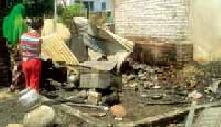 सिलिंडरचा स्फोट : प्रसंगावधान राखल्यामुळे जीवित हानी टळली लोकमत न्यूज नेटवर्क दिग्रस : शहरातील गुरूदेव नगरात मध्यरात्री १ वाजताच्या सुमारास घराला अचानक आग लागली. या आगीत घरातील सिलेंडरचा स्फोट झाल्याने आगीची तीव्रता अधिकच वाढली आणि संपूर्ण घर जळून खाक झाले. त्यामुळे परिसरात एकच खळबळ उडाली. गुरूदेव नगरातील रहिवासी रेखा संजय काळे यांच्या घरात शॉट सर्किटमुळे ही आग लागल्याचे सांगण्यात येते. आग वाऱ्यासारखी पसरून किचनपर्यंत पोहोचली आणि किचनमधील सिलेंडरलाही आगीने आपल्या कवेत घेतले. त्यामुळे सिलेंडरचा स्फोट झाला आणि संपूर्ण घर जळून खाक झाले. त्यामुळे पंखा, कागदपत्रे, कपडे, पलंग, कपाट व इतर मौल्यावान वस्तू जळून खाक झाल्या. जवळपास दोन लाख रुपयांचे नुकसान झाले. सुदैवाने घरातील संपूर्ण सदस्य दुसऱ्या खोलीत झोपले असल्याने प्रसंगावधान राखुन त्यांनी आपले प्राण वाचविले. नागरिकांनी व प्रशासने आगीवर नियंत्रण मिळविल्याने इतर घरांना हानी पोहोचली नाही. या घटनेचा तलाठी हगवणे यांनी पंचनामा केला असून, काळे कुटुंबियांची आर्थिक परिस्थिती लक्षात घेता, शासनाकडून त्यांना अर्थसहाय्य मिळावे, अशी मागणी होत आहे.