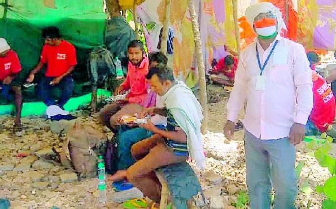 लोकमत न्यूज नेटवर्कयवतमाळ : वाहनाची परवानगी न मिळाल्याने अनेक परप्रांतीय मजूर पायदळ प्रवास करीत आपल्या गावाकडे निघाले. अशा काही मजुरांना बुधवारी स्वयंसेवी संस्थांनी मदतीचा हात दिला. त्यांना दोन घास जेवण दिले. यामुळे त्यांचा पुढील प्रवास सुकर होण्यास मदत झाली.स्वगृही परतण्यासाठी मजुरांना आपले तंदुरूस्ती प्रमाणपत्र द्यावे लागते. यानंतर त्यांना ऑनलाईन पास मिळतो. त्यासाठी तास्न तास रांगेत उभे राहून क्रमांक लावावा लागतो. त्यातही तपासणी होणार किंवा नाही, याची शाश्वती नसते. त्यानंतरही पास मिळाला तरी आता पुढे प्रवास करायचा तर खिशात पैसे नाही. यामुळे परप्रांतीय मजूर पायदळ प्रवास करीत पुढे जात आहेत.संकल्प फाउंडेशनच्या नारी रक्षा सेवा समितीने बुधवारी विविध संघटनांच्या माध्यमातून त्यांच्या भोजनाची आणि नाश्त्याची व्यवस्था केली. हे मजूर गत तीन दिवसांपासून नांदेड, तेलंगाणा येथून निघाले आहे. त्यांना उत्तरप्रदेश आणि छत्तीसगडकडे प्रवास करायचा आहे. वाहतुकीचे कुठलेही साधन उपलब्ध नाही. यामुळे हे मजूर पायदळ निघाले आहेत. भुकेने व्याकूळ झालेल्या या मजुरांना येथील बायपासवर मदत देण्यात आली.शिवसेनेने ३० भोजनाचे डबे, प्रा.घनशाम दरणे, अमनभाई, गोधणीचे पोलीस पाटील मंगेश मानकर, सरपंच सुभाष तोडसाम यांनी भोजनासह पाणी, बिस्कीट, चिवडा आदी पदार्थांची व्यवस्था केली होती. भारतीय नारी रक्षा संघटनेचे सुकांत वंजारी, सीमा शेटे, कल्पना राऊत, विनोद दोंदल, गोधणीचे तलाठी व्ही.ए. शेख, आकाश बोरकर, बंटी कांबळे यांनी मदतीचा हात दिला.
