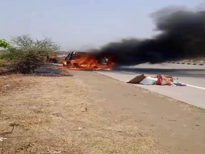 कळंब शहर ओलांडल्यानंतर दोन किलोमीटर अंतरावरील मामाचा ढाब्याजवळ वाहनाच्या बोनेटमधून अचानक धूर निघायला सुरुवात झाली. चालकाने प्रसंगावधान राखून गाडी रस्त्याच्या बाजूला घेतली. सर्वांना खाली उतरविण्यात आले. काही क्षणातच संपूर्ण गाडी जळून खाक झाली. हॉर्न डायरेक्ट होऊन शॉर्टसर्किट झाल्याने आग लागल्याचे सांगण्यात आले.
