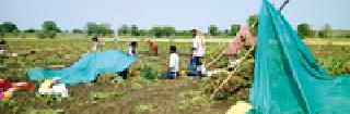 दुष्काळाचा परिणाम : भुईमूग काढणीसाठी राबतात शेकडो हातमहागाव : मराठवाड्यात निर्माण झालेल्या भीषण दुष्काळाने शेकडो मजूर स्थलांतरित होत असून, काही मजुरांनी महागाव तालुक्यात आपला डेरा टाकला आहे. तालुक्यातील भुईमुंग काढणीच्या कामावर मराठवाड्यातील शेकडो मजूर राबताना दिसत आहे. लातूर, हिंगोली या जिल्ह्यातील शेकडो मजूर सध्या महागाव तालुक्याच्या शेत शिवारात राबताना दिसत आहे. मराठवाड्यात निर्माण झालेल्या तीव्र पाणीटंचाईने मजूर स्थलांतरित होत आहे. काही जण शहराकडे धाव घेत आहेत. तर ज्यांच्याकडे कुशल काम करण्याची क्षमता नाही, असे अकुशल कामगार विदर्भात धाव घेत आहेत. महागाव तालुक्यात शेकडो मजूर आले आहेत. शेत शिवारात आपल्या मुलाबाळांसह ही मंडळी राहात आहेत. किमान दोन हजार मजूर तरी महागाव तालुक्यात गावागावात दिसत आहे. हिंगोली जिल्ह्यातील कळमनुरी येथील मजूर अंबोडा परिसरात दिसत आहेत. त्यांची भेट घेतली असता ते म्हणाले, आमच्या गावात हाताला काम नाही. पोट भरायसाठी आणि सहकुटुंब यासाठी आलो आहोत. आमच्या परिसरात पाण्या अभावी भुईमुंग घेतला जात नाही. परंतु इकडे मोठ्या प्रमाणात भुईमुंग असल्याने हाताला काम मिळत आहे. कोरडवाहू शेती आणि पाणीटंचाईमुळे गाव सोडावे लागल्याचे सांगितले. (शहर प्रतिनिधी)मजूर उपलब्ध होत असल्याने शेतकऱ्यांना दिलासाविदर्भात मजुरांची टंचाई कायम असते. मजूर असले तरी शेतात राबायला तयार नसतात. त्यामुळे मराठवाड्यातून आलेल्या या मजुरांमुळे महागाव तालुक्यातील शेतकऱ्यांना दिलासा मिळाला आहे. दिवसरात्र मेहनत करून पोटाची खळगी भरण्याची तयारी या मजुरांची असते. महागाव तालुक्यात मोठ्या प्रमाणात शेतीची कामे असली तरी स्थानिक मजूर काम करायला तयार नसतात. आता मराठवाड्यातील मजूर आल्याने शेतकऱ्यांना काही प्रमाणात का होईना दिलासा मिळाला आहे. कामही झटपट होत आहे. स्थलांतरित मजुरांचे हालमहागाव तालुक्यात स्थलांतरित झालेल्या मजुरांचे वादळी पावसाने मोठे हाल होत आहे. रस्त्यावर राहुट्या ठोकून मजूर रहात आहेत. परंतु वादळामुळे त्यांच्या झोपड्या क्षतिग्रस्त झाल्या आहेत. तर काही ठिकाणी झोपड्यात पाणी शिरले आहे. अंबोडा येथे असलेल्या मजुरांना पाच दिवसांपासून पिण्यासाठी पाणी मिळाले नाही. ट्रान्सफार्मर जळाल्याने या मजुरांना पाच दिवसांपासून येथेही पण्यासाठी भटकंती करावी लागत आहे.