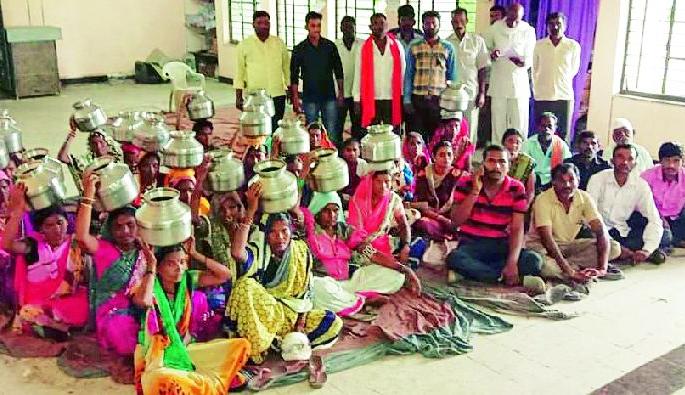 लोकमत न्यूज नेटवर्कआर्णी : तालुक्यातील माहाळुंगी येथे अनेक दिवसांपासून पिण्याच्या पाण्याचा प्रश्न गंभीर झाला आहे. पंचायत समिती प्रशासनाला वारंवार निवेदन व मागण्या करूनही कोणतीच उपाययोजना झाली नाही. भर पावसाळ्यात पिण्याकरिता शुद्ध पाणी नसल्याने येथील ग्रामस्थांना पाणीटंचाईचा सामना करावा लागतो. अखेर संतापलेल्या ग्रामस्थांनी मंगळवारी पंचायत समिती कार्यालयावर धडक दिली.माहाळुंगी गावात मागील अनेक महिन्यांपासून पाणीपुरवठा योजना बंद आहे. पाणीपुरवठा करणाऱ्या विहिरीमध्ये ब्लिचिंग पावडर टाकण्यात आले नाही. पिण्याजोगे पाणी नागरिकांना मिळत नाही. गावातील नाल्यांची साफसफाई करण्यात येत नाही. गावात बहुतांश भागात सांडपाण्यासाठी नाल्याच नाही. गावात घाणीचे साम्राज्य पसरले आहे. त्यामुळे आरोग्यवर परिणाम होत आहे. अनेक घरांमध्ये तापाचे रुग्ण आढळत आहे. या समस्या दूर करण्यात याच्या यासाठी पंचायत समिती प्रशासनाला वारंवार निवेदने दिली. मात्र याची कुणीच दखल घेतली नाही. ग्रामपंचायत प्रशासन गावात कुठेच दिसत नाही. ग्रामसेवक गावाकडे कधी फिरकत नाही. अशा स्थितीमुळे गावातील समस्या दिवसेंदिवस वाढत आहे.यावर तोडगा काढण्यासाठी मंगळवारी महिला व पुरुषांनी डफडे वाजवत आर्णी पंचायत समितीवर धडक दिली. महिलांनी हातात रिकामे हांडे घेवून पंचायत समिती कार्यालयात ठिय्या दिला. यानंतर गटविकास अधिकारी आनंद लोकरे यांनी महिलांना माहाळुंगी येथे येवून परिस्थितीची पाहणी करील व तातडीने उपाययोजना केल्या जाईल, असे आश्वासन दिले.आंदोलनात आशाबाई जाधव, मुक्ता जाधव, संगीता राठोड, कमला, शिला चव्हाण, ललिता राठोड, पंची आडे, पिपंळी पवार, उत्तम राठोड, धनराज राठोड, विजय राठोड, भुषण चव्हाण, दिलीप राठोड, दत्ता राठोड, अरविंद चव्हाण, देवा आडे, लखन पवार यांच्यासह माहाळुंगी गावातील महिला व पुरुष मोठ्या संख्येने सहभागी झाले होते. समस्या न सुटल्यास ग्रामस्थांनी याहीपेक्षा उग्र आंदोलन करण्याचा इशारा दिला आहे.