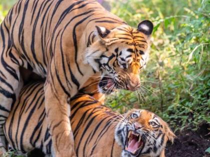 वाघोबा-वाघिणीचा पैनगंगा अभयारण्यात मुक्तविहार... फोटोत कैद झाले दुर्मिळ क्षण, एकदा बघाच...