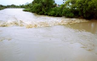 गेल्या २४ तासांपासून संततधार पाऊस सुरू असल्याने वणी शहराजवळून वाहणारी निर्गुडा नदी फुगली आहे. शनिवारी रात्रीपासून ही नदी दुथडी भरून वाहात आहे. रविवारी पावसाने थोडी उसंत घेतल्याने या नदी काठावरील घरांना दिलासा मिळाला.