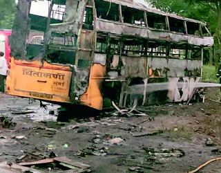 ट्रॅव्हल्स भस्मसात; मृत्यूच्या दाढेतून परतले 20 प्रवासी