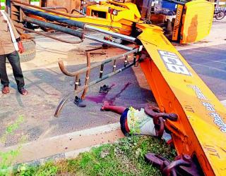 विचित्र घटनेत कामगार ठार; उलटलेला ट्रक काढताना क्रेनही उलटली