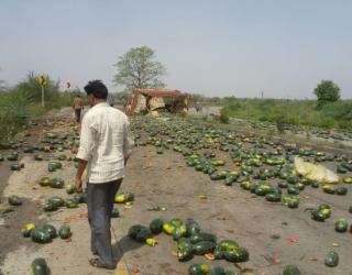 यवतमाळ जिल्ह्यातील वणीनजीक टरबुजाचा ट्रक उलटला