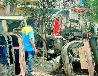 पोलीस मुख्यालयात वाहनांनी घेतला पेट