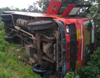 यवतमाळ : यवतमाळ जिल्ह्यात बस उलटली; दोन प्रवासी जखमी