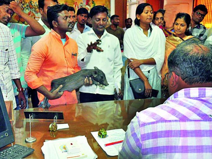यावर कारवाई करण्यासाठी प्रहारने आठ दिवसांची मुदत दिली होती. मात्र डुकरे न पकडल्याने बुधवारी मुख्याधिकारी डी. डी. ढेरे यांच्या कक्षात संघटनेने डुकर सोडून निषेध नोंदविला.