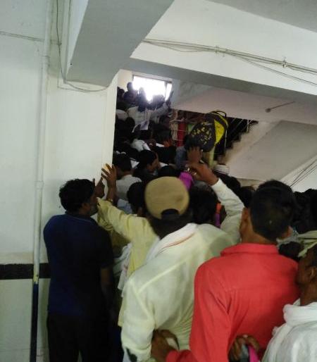लोकमत न्यूज नेटवर्कयवतमाळ : यवतमाळच्या जिल्हाधिकारी कार्यालयस्थित कामगार कार्यालयात सोमवारी पोलीस बंदोबस्तात कामगार नोंदणी करावी लागली.कामगार नोंदणीसाठी सकाळपासूनच कामगारांनी मोठ्या संख्येने गर्दी केली होती. या गर्दीमुळे पायऱ्यांवरील बॅरेकेट्स तुटले. त्यामुळे काही कामगार खाली कोसळले. दुसºया मजल्यावर हे कार्यालय आहे. या कार्यालयाच्या परिसराला कामगारांच्या गर्दीमुळे जणू यात्रेचे स्वरूप प्राप्त झाले आहे. कामगार कार्यालयात पुरेसे मनुष्यबळ नसल्याने नोंदणीस विलंब होतो आहे. त्यातूनच कायदा व सुव्यवस्थेचा प्रश्न निर्माण होण्याची भीती व्यक्त केली जात आहे. कामगारांची होणारी गर्दी व सोयीसुविधांचा अभाव लक्षात घेता कामगार नोंदणी कार्यालय इतरत्र हलविण्याची परवानगी या कार्यालयाने प्रशासनाकडे मागितली आहे. गेल्या काही दिवसांपासून या नोंदणीसाठी कामगारांची गर्दी सुरू आहे. रोजगार बुडवून कामगार नोंदणीसाठी येत आहेत. मात्र त्यांना वारंवार येरझारा माराव्या लागत असल्याने व दिवसभर रांगेत ताटकळत राहावे लागत असल्याने त्यांच्यात प्रचंड रोष पाहायला मिळत आहे.