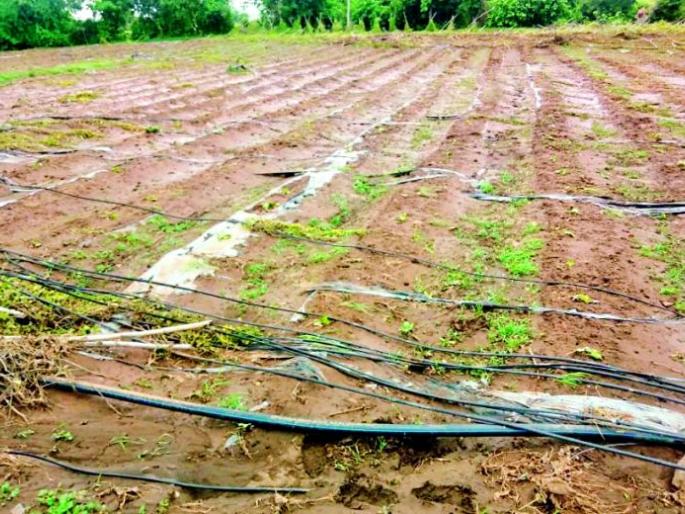 तालुक्यात वरूड महसूल मंडळातील ४० मिमी पावसामुळे या परिसरातील नाल्याला मोठा पूर आला. हा नाला गहुली येथून चोंढी, बान्सी, पिंपळखुटा, एरंडा आदी गावांपासून वाहतो. नाल्याच्या काठावरील या सर्व गावांतील जवळपास शंभर एकरावरील सोयाबीन, कापूस, कारले आदी पिके खरडून गेली. एरंडा येथील कसान भिका राठोड या शेतकऱ्याने दोन एकरात कारल्याची लागवड केली होती. मात्र या वादळी पावसाने संपूर्ण शेती खरडून गेली. तसेच शेतातील ड्रीपसुद्धा वाहून गेल्याने त्यांचे अंदाजे पाच ते सहा लाख रुपयांचे नुकसान झाल्याची माहिती आहे.