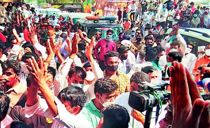 लोकमत न्यूज नेटवर्कदिग्रस : पूजा चव्हाण संशयास्पद मृत्यू प्रकरणात आरोप झाल्यानंतर गेले १५ दिवस ‘नाॅट रिचेबल’ असलेले वनमंत्री संजय राठोड अखेर मंगळवारी पोहरादेवी येथे देवदर्शनासाठी अवतरले. तर मंत्री महोदयांच्या दर्शनासाठी हजारो कार्यकर्त्यांनी गर्दी केली. कोरोनाच्या पार्श्वभूमीवर गर्दी पांगविण्यासाठी पोलिसांना अक्षरश: लाठीमार करावा लागला. तर दुसरीकडे कार्यकर्त्यांनीही पोलिसांवर दगडफेक केली. मंगळवारी दुपारी १ वाजता वनमंत्री तथा जिल्ह्याचे पालकमंत्री संजय राठोड हे पत्नीसह पोहरादेवी जि. वाशिम येथे पोहोचले. हजारो समर्थकांच्या गर्दीतून वाट करीत त्यांनी जगदंबा मातेचे मंदिर, संत सेवालाल महाराज मंदिर, संत बाबनलाल महाराज मंदिर व संत रामराव महाराज समाधीस्थळी जावून दर्शन घेतले. गाजत असलेल्या पूजा चव्हाण मृत्यू प्रकरणामुळे येथे गर्दी होण्याची शक्यता लक्षात घेता पोलिसांनी सकाळपासूनच तगडा बंदोबस्त लावला होता. जागोजागी तपासणी होत असतानाही ना. राठोड पोहोचण्यापूर्वीच हजारो समर्थक पोहरादेवीच्या वेशीपर्यंत पोहोचले होते. कोरोना टाळण्यासाठी पोलिसांना गर्दी पांगविण्यासाठी लाठीमार करावा लागला. यात काही कार्यकर्त्यांनीही पोलिसांवर दगडफेक केली. दरम्यान पोलिसांनी ना. राठोड यांना दर्शनाच्या ठिकाणी सुखरुप पोहचविले. दर्शनानंतर ना. राठोड यांनी प्रसार माध्यमांशी संवाद साधला.