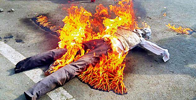 उपोषणकर्त्यांची प्रकृती खालावल्यानंतरही प्रशासनातील अधिकारी व लोकप्रतिनिधी यांनी आंदोलनाची दखल न घेतल्याने शुक्रवारी मनसेच्या संतप्त कार्यकर्त्यांनी आमदार संजीवरेड्डी बोदकुरवार यांच्या पुतळ्याचे दहन केले.