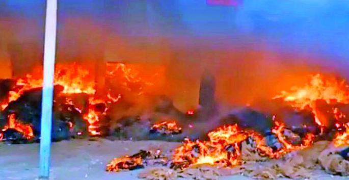 यवतमाळ : येथील एमआयडीसीत पणन महासंघाचे कापूस खरेदी केंद्र असलेल्या गायत्री जिनिंगमध्ये रविवारी दुपारी आग लागली. या आगीत गोदामात ठेऊन असलेली सरकी जळून खाक झाली. अचानक आग लागल्याने कापूस विक्रीसाठी घेऊन आलेल्या शेतकऱ्यांची तारांबळ उडाली. कापसाची वाहने जिनिंगच्या परिसरातून बाहेर काढण्यासाठी एकच हल्लकल्लोळ उडाला. नगरपरिषदेच्या अग्नीशमन बंबाने तत्काळ घटनास्थळ गाठून आगीवर नियंत्रण मिळविण्याचे प्रयत्न सुरू केले.