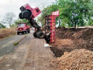 टिप्पर उलारला : यवतमाळ-घाटंजी मार्गावर आकपुरीनजीक रस्ता रूंदीकरण सुरू आहे. या कामावर वाहनांव्दारे साहित्य आणून टाकले जात आहे. बुधवारी त्यातील एक वाहन मुरुम टाकताना असे उलार झाले होते.