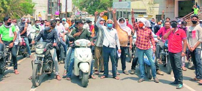 लोकमत न्यूज नेटवर्कयवतमाळ : कोरोना संसर्गाची साखळी तोडण्यासाठी राज्य शासनाने ३० एप्रिलपर्यंत तब्बल २५ दिवसांचा लाॅकडाऊन जाहीर केला आहे. अत्यावश्यक सेवेची ३० ते ४० टक्के दुकाने खुली राहत असताना लाॅकडाऊनचा उपयोग काय असा प्रश्न उपस्थित करीत बुधवारी यवतमाळात व्यापारी रस्त्यावर उतरले. यवतमाळ शहरातील व्यापाऱ्यांनी रस्त्यावर उतरुन निदर्शने केली. दुपारी स्थानिक बसस्थानक चौकातून व्यापाऱ्यांचा मोर्चा निघाला. तहसील चौक, गांधी चौक, लोखंडी पूल ते पाच कंदील चौकमार्गे जिल्हा कचेरीवर मोर्चा धडकला. यावेळी मोर्चेकऱ्यांनी राज्य शासनाविरोधात नारेबाजी केली. त्यानंतर चेंबर ऑफ काॅमर्स अन्ड इंडस्ट्रीजच्या नेतृत्वात जिल्हाधिकाऱ्यांना मागण्यांचे निवेदन सादर करण्यात आले. दरम्यान बुधवारी भाजपच्या आमदारांनीही लाॅकडाऊनला तीव्र विरोध करीत सरकारने या निर्णयाचा फेरविचार करावा, अशा मागणीचे निवेदन जिल्हाधिकाऱ्यांना दिले. एकीकडे व्यापारपेठ बंद तर दुसरीकडे ई-काॅमर्स सुविधा सुरू ठेवून सरकार व्यापाऱ्यांना आणखी अडचणीत आणत असल्याचा आरोप करण्यात आला. जमावबंदी आदेश असला तरी सकाळी ७ ते रात्री ८ पर्यंत नागरिकांचा शहरात मुक्त संचार राहतो. मग व्यापाऱ्यांवरच अन्याय का असा प्रश्न विचारण्यात आला आहे. व्यापाऱ्यांनी लाॅकडाऊनचा निर्णय मागे घेण्यासाठी सरकार व प्रशासनाला तीन दिवसांचा अल्टीमेटम दिला असून त्यानंतर कुटुंबासह रस्त्यावर उतरण्याचा इशारा दिला आहे. आंदोलनात मंडप, कॅटरिंग असोसिएशन, नेताजी चौक कापड व्यापारी, इंदिरा गांधी मार्केट व्यापारी, हॉटेल व्यावसायिक असोसिएशन, बुक डेपो असोसिएशनसह विविध संघटनांचे पदाधिकारी सहभागी झाले होते. दरम्यान, मोर्चा काढून जमावबंदीचे उल्लंघन करणाऱ्यांविरुद्ध गुन्हे दाखल करण्यात आले.