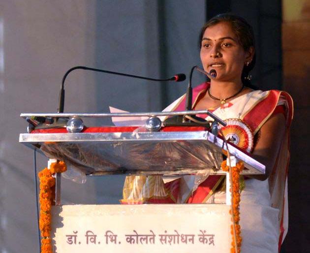 स्नेहा मोरेलोकमत न्यूज नेटवर्कराष्ट्रसंत तुकडोजी महाराज साहित्यनगरीयवतमाळ : अडचणीत आलेल्या तोरना, मरनाले दिल्लीची नाही, गल्लीतलीच बाई कामी येते, हे पुन्हा सिद्ध झालं, अशा शब्दात आपले मनोगत ९२ व्या अखिल भारतीय मराठी साहित्य संमेलनाच्या उदघाटक आत्महत्याग्रस्त शेतकरी सुधाकर येडे यांच्या पत्नी वैशाली येडे यांनी व्यक्त केले.मराठीच्या एवढ्या मोठ्या मंगल सोहळ्यात कुंकुवाचा टिळा लावण्यासाठी माज्यासारखी विधवा कामी आली हे माझं भाग्य समजते असे म्हणत येडे यांनी आवर्जून नमूद केले. ज्येष्ठ साहित्यिका नयनतारा सहगल यांचे उदघाटक म्हणून आमंत्रण रद्द केल्यानंतर संमेलनाच्या उद्घाटकाचा मान कोणाकडे जाणार याबाबत सर्व स्तरांवर चर्चा रंगत होती. काही मान्यवर साहित्यिकांनी पुन्हा सहगल यांना सन्मानाने आमंत्रित करण्याची मागणी केली होती. अखेर संयोजकांनी गुरुवारी दुपारी या वादावर पडदा टाकत वैशाली येडे यांचे नाव उद्घाटक म्हणून घोषित केले. त्यांनतर येडे यांच्या मनोगताविषयी साहित्य वतुर्ळात उत्सुकता निर्माण झाली होती. मात्र याला पूर्णविराम देत येडे यांनी अत्यंत परखड आणि बेधडकपणे आपले मनोगत व्यक्त करीत उपस्थितांची दाद मिळवली.याप्रसंगी येडे यांनी म्हटले की , पुनर्जन्म मानत नाही, तसे असते तर मीही आत्महत्या केली असती. शेतकरी मरणानंतर अंबानी, अदानी होत नाही हे माज्या नवऱ्याला समजले नाही याची खंत आहे. माझा मात्र या जन्मावर विश्वास आहे म्हणून याच जन्मात ही वायद्याची शेती फायद्यात करण्यासाठी लढत आहे. मी बहिणाबाईंची लेक आहे, म्हणून कोणी अंगावर हात टाकला तर त्याला हात दाखविण्याची ताकद आहे, असे सांगत मी विधवा नाही, एकल महिला आहे असे येडे यांनी अधोरेखित केले. लेखन, साहित्याचा बाजार वाचत नाही , मी माणसांमध्ये राहून माणस वाचली, पण साहित्यातून जगण्याच बळ मिळत हे खरे आहे. त्यामुळेच 'तेरव' या नाट्यकृतीचा जन्म झाला. यातून एकल महिलांच्या जगण्याचा मदार्नी संघर्ष दाखविला आहे असे येडे म्हणाल्याजग रहाटीनं लादलेल विधवापणबाई नवऱ्याच्या घरी जाताना कुळ, दैवत, माय-बाप नवअडचणीत आलेल्या तोरना, मरनाले दिल्लीची नाही, गल्लीतलीच बाई कामी येते, हे पुन्हा सिद्ध झालं, अशा शब्दात आपले मनोगत ९२ व्या अखिल भारतीय मराठी साहित्य संमेलनाच्या उदघाटक आत्महत्याग्रस्त शेतकरी सुधाकर येडे यांच्या पत्नी वैशाली येडे यांनी व्यक्त केले. मात्र असेच एखाद्या पुरुषाच्या बाबतीत झाले तर त्याला जमेल का असा परखड सवाल येडे यांनी उपस्थित केला. माज्या वाट्याला आलेल पांढर कपाळ हे निर्सगाच्या नियमाने आलेल नाही तर जगरहाटीनं आले आहे असे सांगत व्यवस्थेन अडचणीत आलेल्या तोरना, मरनाले दिल्लीची नाही, गल्लीतलीच बाई कामी य