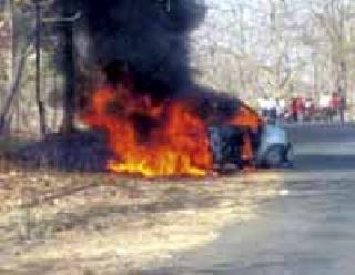 यवतमाळ : जिल्ह्यात दोन वेगवेगळ्या अपघातात एका महिलेसह तरुण जागीच ठार झाला. यवतमाळ-दारव्हा मार्गावरील उमर्डा नर्सरीजवळ कारने दुचाकीला धडक दिली. त्यात तरुण जागीच ठार झाला. अपघातानंतर संतप्त नागरिकांनी कार पेटवून दिली. तर दुसरी घटना उमरखेड तालुक्यातील जेवली येथे घडली. ट्रॅक्टरच्या धडकेने दुचाकीस्वार महिला जागीच ठार झाली. तिचा चार वर्षाचा मुलगा गंभीर जखमी झाला. यवतमाळ-दारव्हा मार्गावरील उमर्डा नर्सरीजवळ सोमवारी सकाळी ८.३० वाजताच्या सुमारास भरधाव कारची दुचाकीला धडक लागली. यात दयाराम किसन राठोड (३८) रा. तिवसा ता. यवतमाळ हा जागीच ठार झाला. तर अनिल शंकर पवार (३५) रा. तिवसा हा गंभीर जखमी झाला. हे दोघे दुचाकी एम.एच.२९-एयू-७३४५ ने सोमवारी सकाळी ८.३० वाजता यवतमाळकडे येत होते. त्याच वेळी यवतमाळकडून दारव्ह्याकडे जाणाऱ्या वॅगनआर कार (एम.एच.२९-आर-२४९७) ने जबर धडक दिली. त्यात दयाराम जागीच ठार झाला. तर अनिलला यवतमाळच्या शासकीय रुग्णालयात उपचारासाठी दाखल करण्यात आले. दरम्यान अपघातस्थळी उभ्या असलेल्या कारला अज्ञात इसमांनी आग लावून दिली. यात कार पूर्णत: जळून भस्मसात झाली. या घटनेची माहिती मिळताच लाडखेड आणि दारव्हा येथील पोलिसांनी घटनास्थळी धाव घेतली. अग्निशमन दलालाही पाचारण करण्यात आले होते. सदर कार आनंद पुंडलिक मराडे रा. बालाजी सोसायटी यवतमाळ यांच्या मालकीची असून चालक विजय धनसिंग राठोड रा. लोहारा याच्याविरुद्ध गुन्हा दाखल करून त्याला अटक केली आहे. भरधाव ट्रॅक्टरने दुचाकीला धडक दिल्याने झालेल्या अपघातात महिला जागीच ठार झाल्याची घटना उमरखेड तालुक्यातील जेवली येथे सोमवारी दुपारी २ वाजताच्या सुमारास घडली. या अपघातात तिचा चार वर्षाचा मुलगा गंभीर जखमी झाला. सुनीता रामदास येरवाड (२५) रा. बोदडी ता. किनवट असे मृत महिलेचे नाव आहे. तर संदीप रामदास येरवाड (४) असे जखमी मुलाचे नाव आहे. सुनीताच्या बहिणीकडे मंगळवारी लग्न असल्याने सुनीता आपल्या पुतण्यासोबत दुचाकीने जेवलीनजीकच्या मथुरानगर तांडा येथे येत होती. गावाजवळ मागून येणाऱ्या ट्रॅक्टरने दुचाकीला जबर धडक दिली. त्यात सुनीता ट्रॅक्टर ट्रॉलीच्या मागच्या चाकात आली आणि जागीच ठार झाली. तर तिचा मुलगा संदीप याच्या दोनही पायाला जबर दुखापत झाली. पुतण्या या अपघातात सुर्दैवाने बचावला. अपघातानंतर ट्रॅक्टर चालक घटनास्थळावरून पसार झाला. घटनास्थळावर नागरिकांची मोठी गर्दी झाली होती. बिटरगाव पोलिसांनी या अपघाताची नोंद घेतली.